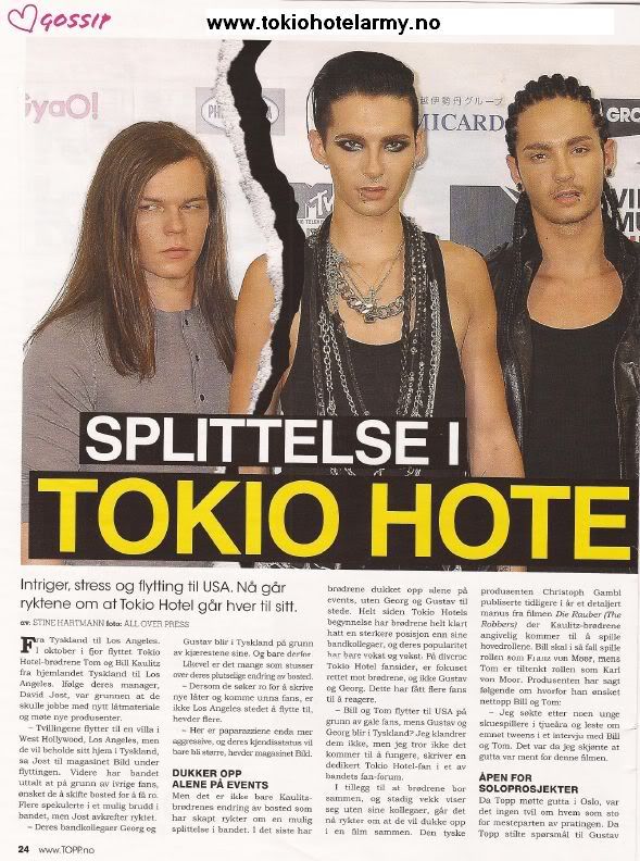 Intrigue, stress and moving to USA. Now the rumour has it that Tokio Hotel are going in opposite directions.